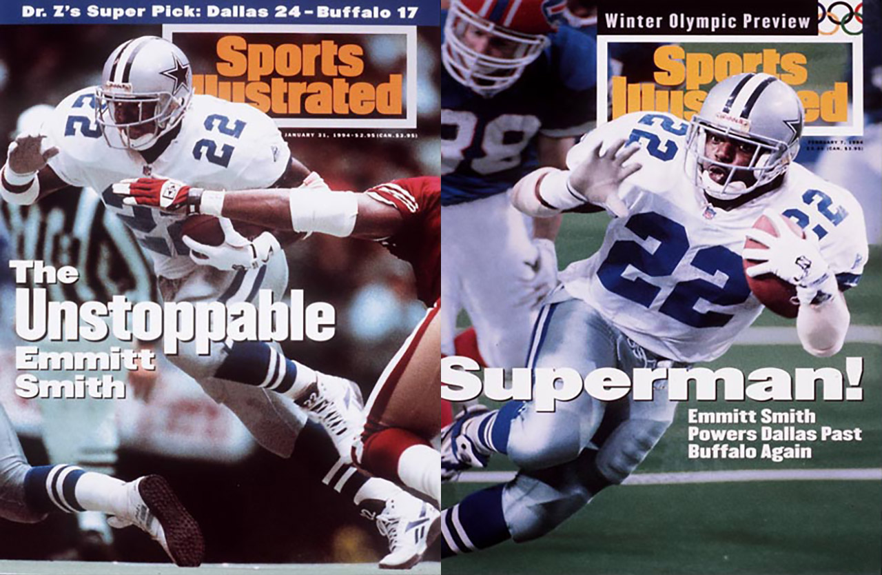 In 1994, Smith overcame his fear of the Sports Illustrated cover jinx, and — with a little help from the famous “run right” play — propelled the Cowboys over the Bills 30-13 in Super Bowl XXVIII.