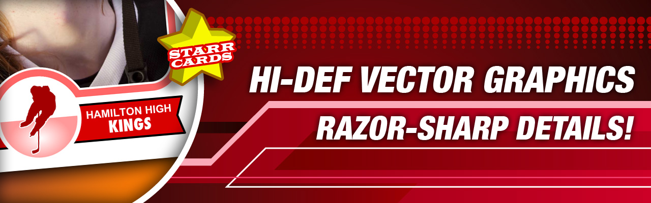 Choose from an ever-expanding lineup of designs to give your cards just the right look. No matter if you’re a proud parent, a budding talent, or a school wanting to raise revenue, Starr Cards can create the perfect hockey cards for you, your team, or league.