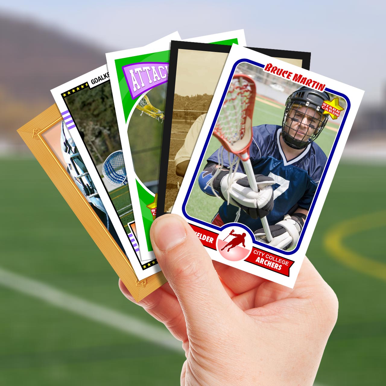 Choose from an ever-expanding lineup of designs to give your cards just the right look. No matter if you’re a proud parent, a budding talent, or a club wanting to raise revenue, Starr Cards can create the perfect lacrosse cards for you, your team, or league.