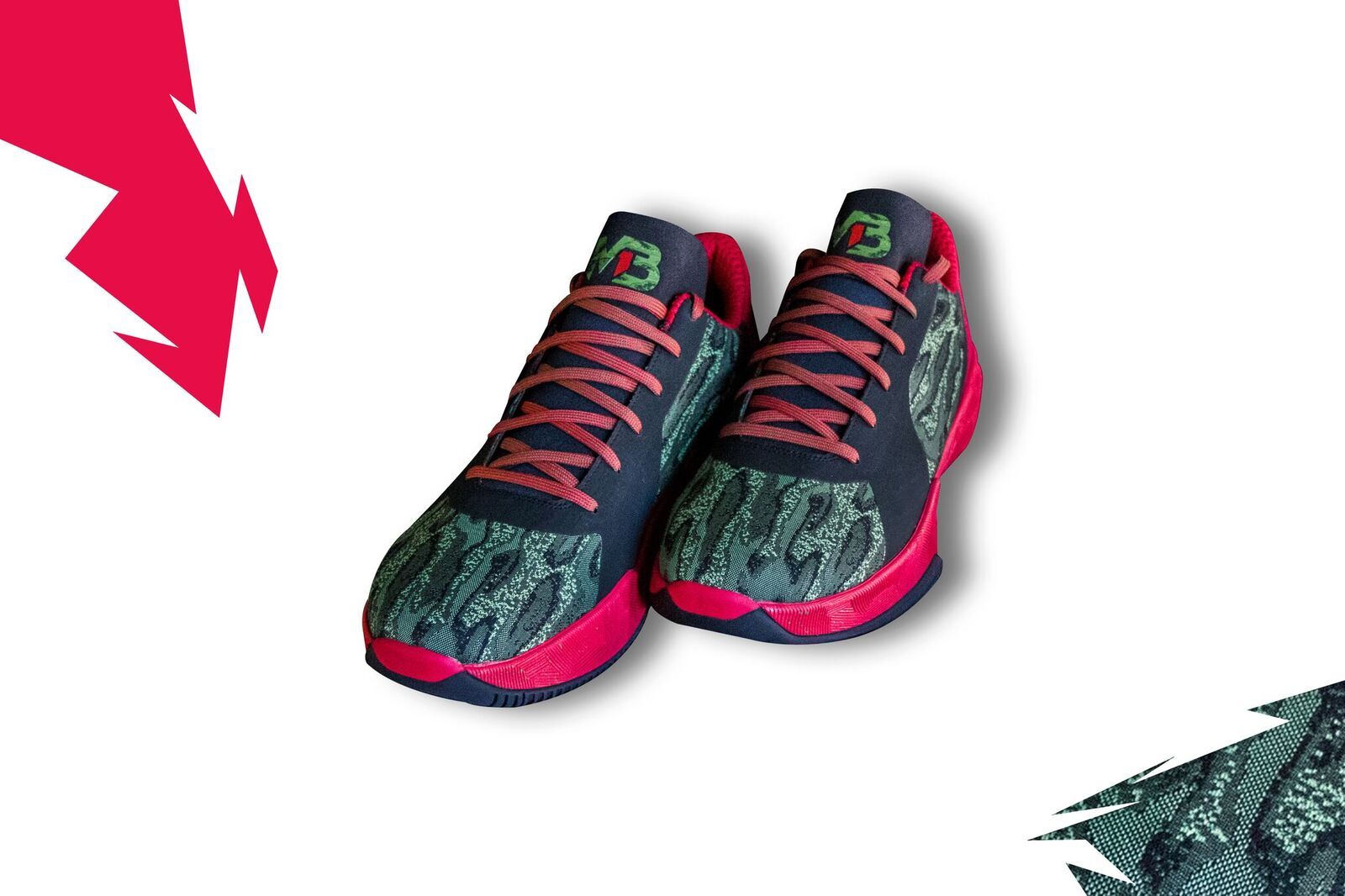 Debuting in a low-top cut, the MB1s feature an “advanced performance insole” embedded throughout the shoe for maximum comfort. The two-tone woven textile exterior has a camo fly knit upper, set off by a bright-red sole.