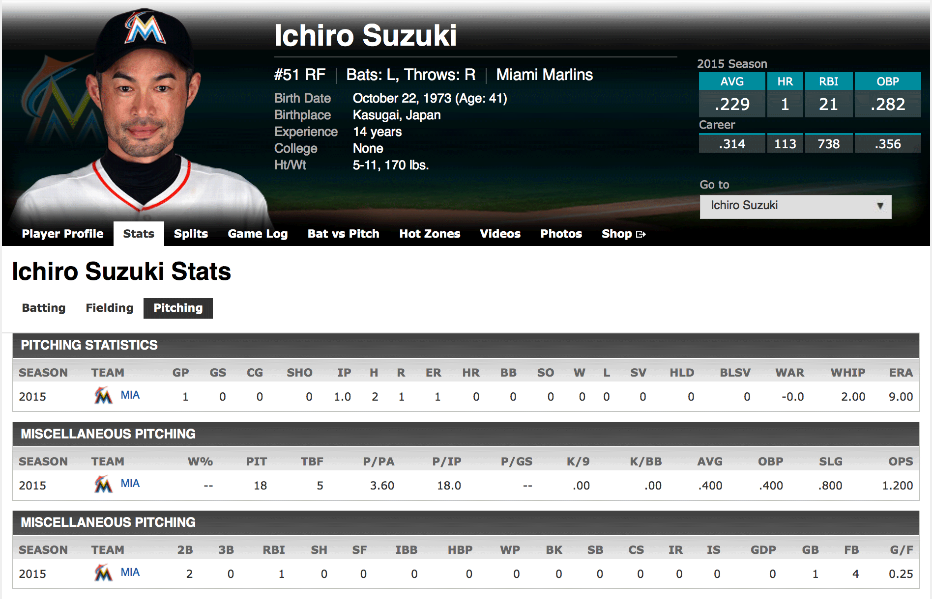 Unlike Suzuki’s Hall-of-Fame-worthy batting stats that have him just 65 hits shy of 3,000, with a lifetime average of .324, his newly-established pitching line will forever be pedestrian.