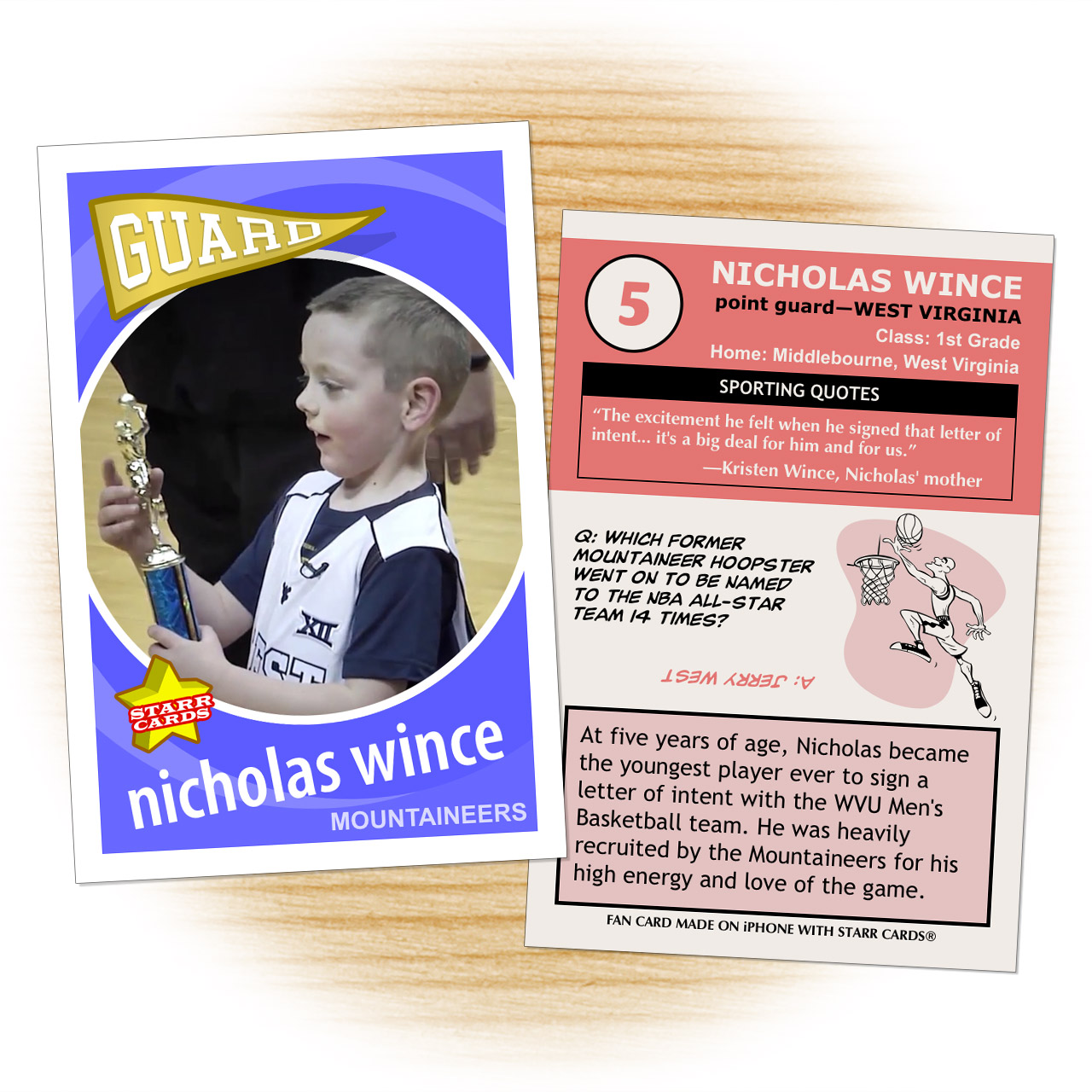 LeBron James Jr. was in the news earlier in the week due to his famous father’s displeasure at colleges sending his ten-year-old son recruitment letters. But even Father James would surely approve of five-year-old Nicholas Wince’s recent signing with the WVU men’s basketball team.